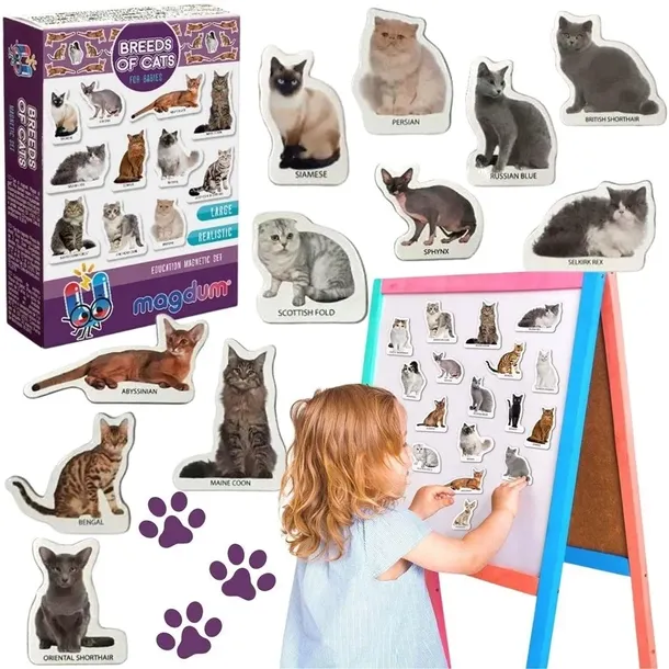 Zestaw magnesów "Rasy kotów" to fascynująca podróż w świat kotów. Dzięki magnesom, maluch rozwinie swoje zainteresowania, ucząc się jednocześnie cennych umiejętności. To idealny prezent dla każdego miłośnika tych uroczych zwierząt.