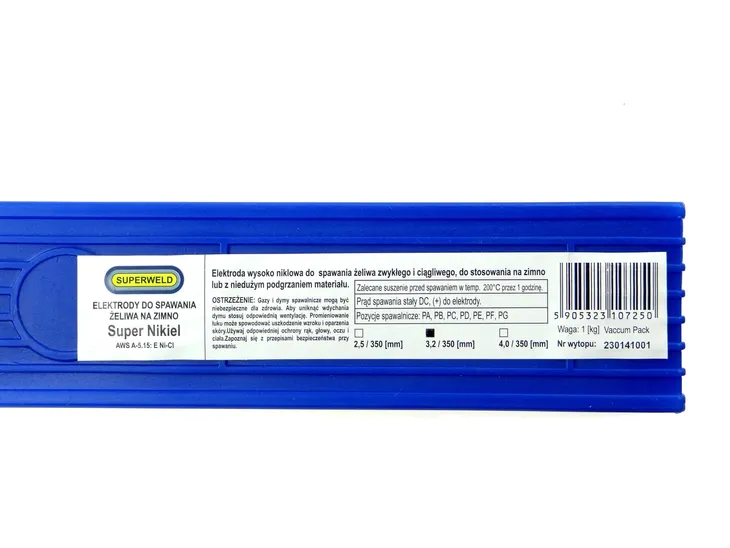 Elektrody otulone niklowe SUPERWELD Ni-Cl do spawania żeliwa szarego i ciągliwego, stosowane w naprawach, regeneracji odlewów żeliwnych metodą na zimno lub z niewielkim podgrzaniem materiału.