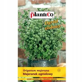 Nasiona marki PlantiCo. Zioła - Majeranek roślina jednoroczna. Wymaga gleby ciepłej, zasobnej w próchnicę, żyznej, wapiennej i wilgotnej. Stanowisko słoneczne. Surowcem jest ziele. W kuchni stosujemy jako przyprawę do mięs, pasztetów, zup grochowych i fasolowych, żuru, flaków.