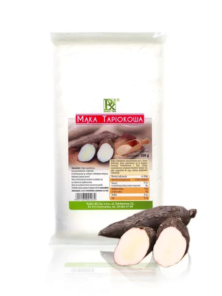 Tapiokę pozyskuje się z manioku. Z tapioki wyrabia się mąkę, w której znajdują się węglowodany łatwo trawione przez żołądek oraz niewielka ilość białka. Mąka ta nie zawiera frakcji glutenu, nie ma w niej także cholesterolu. Potrawy z mąki z tapioki nie uczulają.