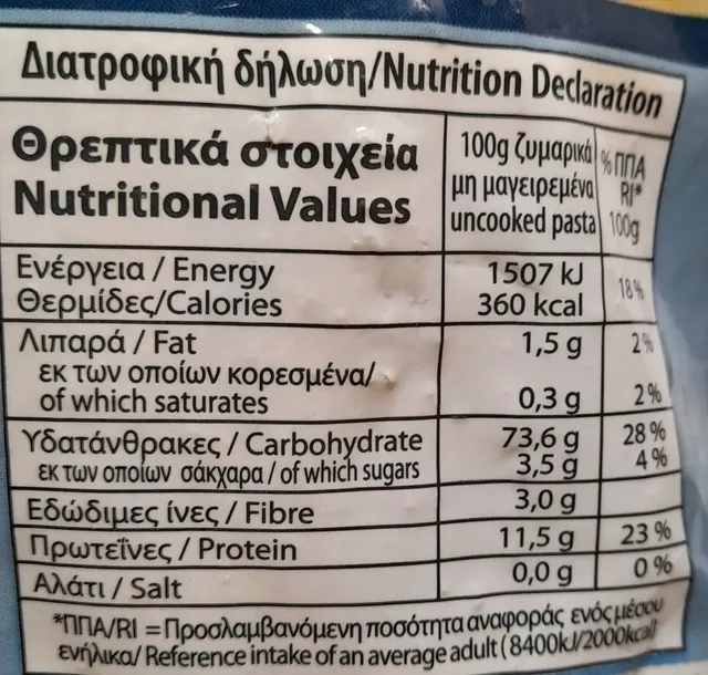 Składniki: semolina, z pszenicy Durum, woda, zawiera gluten.