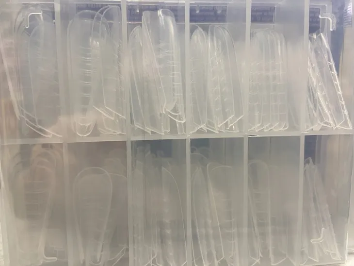Pudełko składa się z 12 rozmiarów, a każdy z rozmiarów zawiera 10 tipsów. W opakowaniu znajduje się 120 sztuk tipsów.