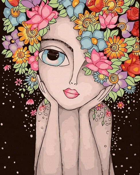 Malowanie po numerach czarne płótno - Dziewczyna..