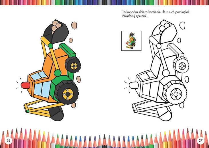Malowanki. Pojazdy to malowanka dla wszystkich chłopców, których fascynuje motoryzacja. W środku znajduje się wybór najciekawszych samochodów i pojazdów – są więc samochody sportowe, ekskluzywne, maszyny budowlane, radiowóz, motor i wiele innych. Do każdej ilustracji jest zamieszczony kolorowy wzór oraz dołączona naklejka. To prawdziwa gratka dla fanów samochodów! Rysunki są proste do pomalowania i duże, dlatego z powodzeniem mogą po nie sięgać nawet najmłodsze dzieci. Serdecznie polecamy!