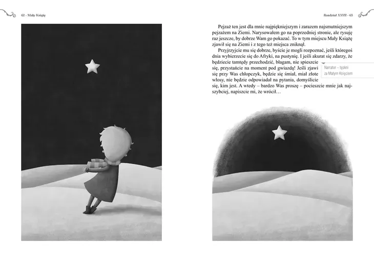 Wydanie Małego Księcia kompletne bez skrótów i cięć w treści. W tym wydaniu znajdziesz odpowiedzi na pytania z podręcznika – „pewniak na teście”, czyli wskazanie zagadnień, które zwykle pojawiają się w pytaniach z danej lektury we wszelkich testach sprawdzających wiedzę, a także w podręcznikach i na klasówkach. Zawiera bardzo szczegółowe streszczenie oraz drugie skrócone, ułatwiające szybkie przygotowanie się przed lekcją. Opracowanie zawiera plan wydarzeń, wnikliwie wyjaśnioną problematykę oraz szerokie charakterystyki bohaterów. Małego Księcia nie trzeba nikomu przedstawiać. Ten chłopiec od lat uczy, jak patrzeć na świat oczami dziecka, jak nie zatracić wrażliwości i wyobraźni, czym jest prawdziwa przyjaźń i miłość. Powieść Antoine'a de Saint-Exupéry'ego została przetłumaczona na ponad 270 języków, kochana przez rzesze czytelników, należy do arcydzieł światowej literatury. Mały Książę to wzruszająca, ciepła, pocieszająca lektura, o której nie sposób zapomnieć. Zapraszamy do lektury, a może kiedyś niespodziewanie i do was przyjdzie mały chłopiec i poprosi: „Proszę, narysuj mi baranka…”