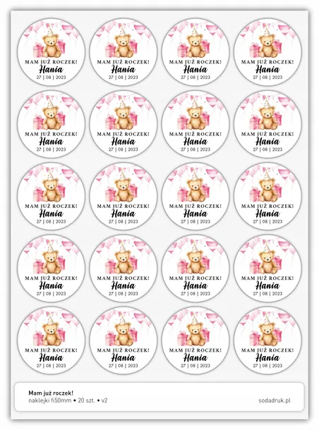 MAM JUŻ ROCZEK! – naklejki urodzinowe v2