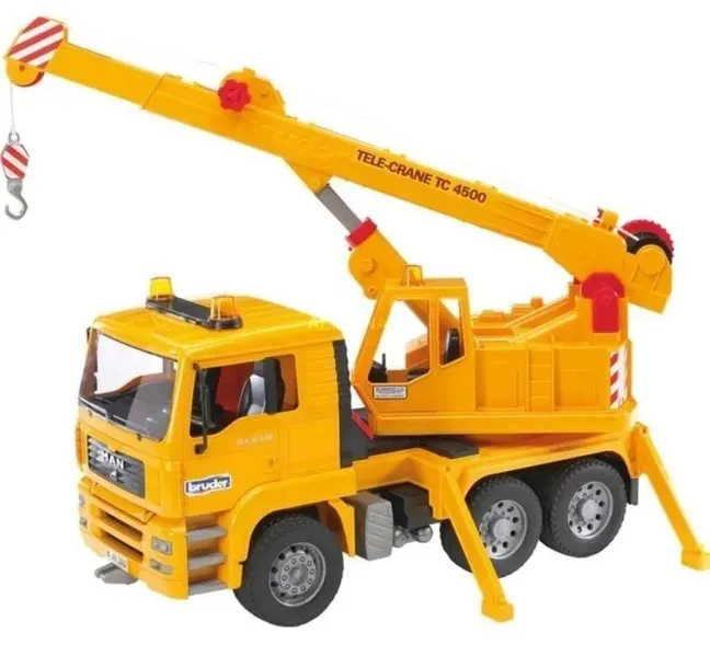 Dźwig MAN Bruder 02754 Skala 1:16 Wymiary: 42,5 x 17,5 x 24,2 cm Seria Profi Rekomendacja wiekowa: dzieci powyżej 4 lat Doskonała zabawka edukacyjna, której głównymi cechami są: składana lusterka odchylana kabina miękkie, gumowe opony z bieżnikiem składane podpory stabilizujące obrotowa o 360° kabina z wysięgnikiem regulacja długości i wysokości teleskopowego wysięgnika za pomocą korbki kołowrót linowy obsługiwany za pośrednictwem korbki możliwość instalacji modułu sygnalizacyjnego 02801 lub 02802 kompatybilność z figurkami Brudera Akcesoria (w osobnej ofercie): - Bruder 02582 Pług śnieżny duży - Bruder 02801 Moduł świetlno-dźwiękowy - Bruder 02802 Uniwersalny moduł świetlno-dźwiękowy - Bruder 62007 Akcesoria drogowe