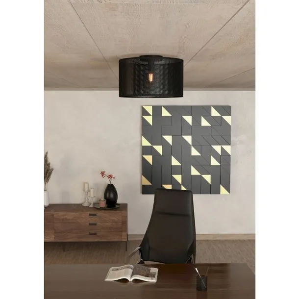 Lampa sufitowa, plafon MANBY z czarnym, okrągłym, metalowym kloszem, który został wykonany z siatki cięto-ciągnionej. Siatka tworzy fascynującą grę światła i cienia, gdy tylko lampa zostanie włączona. Lampa o monochromatycznym, industrialnym wyglądzie dyskretnie dopełnia nowoczesne style wyposażenia i zapewnia nastrojowe oświetlenie każdego pomieszczenia - czy to w salonie, sypialni czy jadalni. Przedstawiona żarówka nie wchodzi w zakres dostawy. Do lampy pasują żarówki z trzonkiem E27.Wysokość artykułu (w mm/in): 280 Średnica artykułu (w mm/in): 450