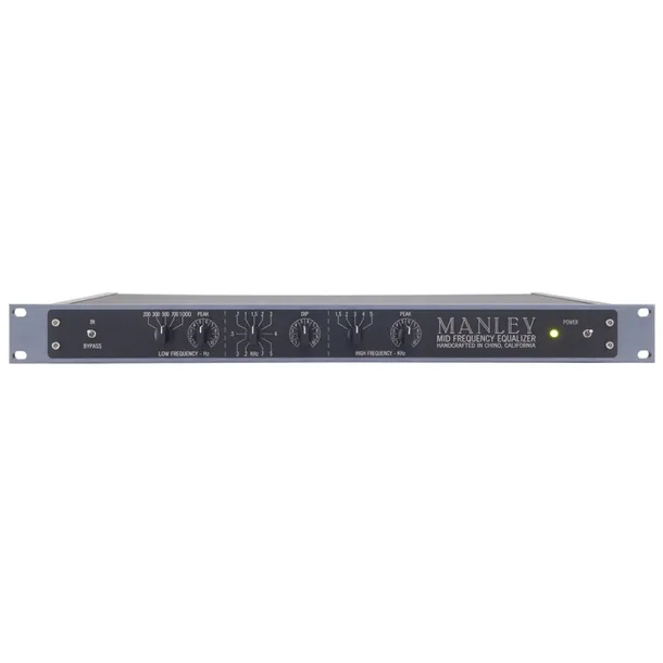 MID FREQUENCY ENHANCED PULTEC EQ (typ MEQ-5), szczególnie przydatny dla instrumentów skupionych w średnim paśmie takich jak gitary, wokale, harmonijki i skrzypce, posiada te same cechy i parametry, co nasza wersja „EQP-1A”. Różnice leżą w części pasywnej korektora: w MID EQ pokrętła DIP i PEAK działają na znacznie ostrzej nachylonych krzywych korekcji, skupionych na wybranych częstotliwościach, co daje realizatorowi-producentowi bardziej precyzyjną kontrolę nad niezwykle ważnym zakresem średnich tonów i sprawia, że urządzenie to jest niezastąpione dla realizatorów masteringu. MID EQ całkowicie wypełnia również luki częstotliwościowe pomiędzy sekcjami niskich i wysokich częstotliwości naszego korektora Enhanced Pultec EQP-1A; w ten sposób połączenie tych dwóch urządzeń zapewnia najbardziej elastyczną paletę możliwości do nagrywania lub masteringu.