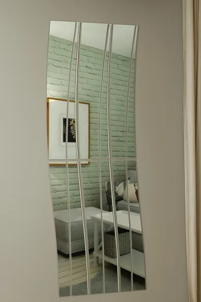 Marea Lustrzana to designerskie lustro akrylowe w formie smukłej, falistej kompozycji modułowej. Wysoka jakość wykonania i efekt przestrzenności sprawiają, że jest to zarówno praktyczne lustro, jak i efektowna dekoracja ścienna do salonu, przedpokoju czy sypialni.
