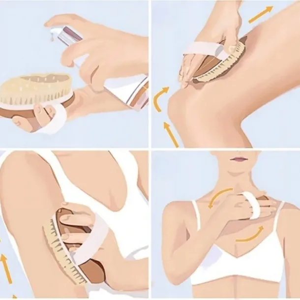 Szczotka do masażu ciała na sucho lub mokro. Wystarczy przez kilka minut dziennie szczotkować skóre aby pobudzić krążenie, zredukować cellulit i ujędrnić skórę. Wg medycyny wschodu zabieg szczotkowania przyczynia się do redukcji powstających w ciele złogów energetycznych i działa oczyszczająco. Masaż pobudza krążenie krwi i stymuluje układ limfatyczny