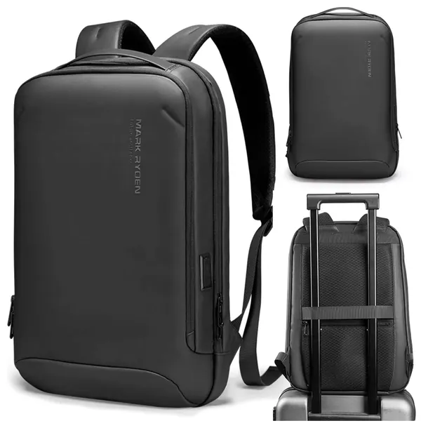 ▶️ Plecak na Laptopa 15.6" Mark Ryden, Wodoodporny, Lekki i Smukły, Podróżny z Wyjściem USB, Kieszenią na Karty i Zamkiem YKK, Materiał EVA, 14L (42×30×12 cm) – Czarny