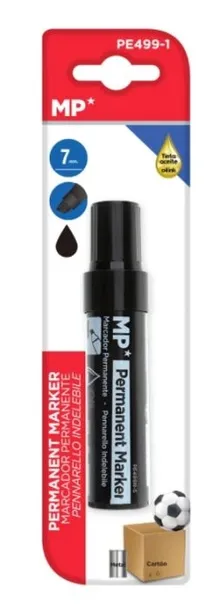 Marker permanentny 1 SZT CZARNYilość: 1sztRodzaj tuszu: PermanentnyKolor tuszu: CZARNYGrubość końcówki:7 mmProducent: MPPrzeznaczenie: Do pisania po metalu, szkle, plastiku, gumie, grubym papierze, drewnie