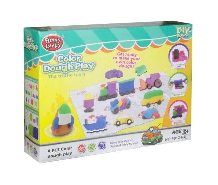 Zestaw masy plastycznej.#&W skład zestawu wchodzą 4 kolory ciastoliny, a także 10 foremek w kształcie pojazdów, wałek, nożyk i mata na której można się bawić tak aby uniknąć pobrudzenia przesteni wokół zabawy np mebli.. Zestaw pozwoli ćwiczyć dzieciom ich małe zwinne paluszki, a także będzie rozwijał u dzieci wyobraźnię i kreatywność.#&Zabawka przeznaczona dla dzieci powyżej 3 lat.