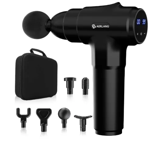Pistolet do masażu AERLANG – głęboki masaż mięśni, ulga w bólu, 6 głowic i 20 prędkości