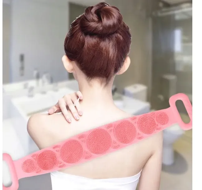 MASAŻER DO KĄPIELI mycie pleców nóg ciała różowy myjka silikonowa szczotka