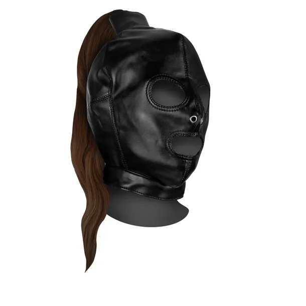 Mask With Brown Ponytail - Black