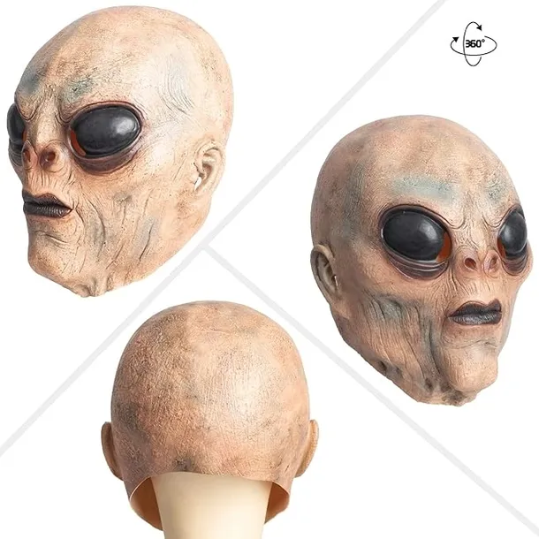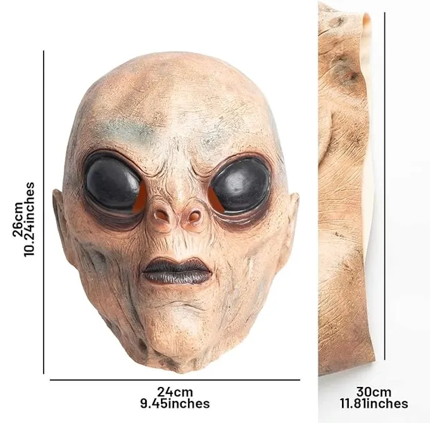 Lateksowa Maska Kosmity – Straszy Kostium na Halloween z Motywem UFO