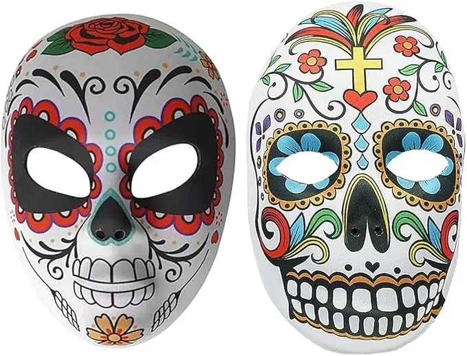 Efektowny zestaw 2 masek Sugar Skull inspirowanych meksykańskim Día de los Muertos to idealny dodatek do przebrania na karnawał, Halloween, sylwestra, imprezy tematyczne i sesje zdjęciowe. Kolorowe zdobienia w stylu czaszki przyciągają uwagę i nadają charakteru każdej stylizacji. Maski są lekkie, wygodne i mocowane na elastycznej gumce, dzięki czemu dobrze trzymają się na twarzy zarówno u dorosłych, jak i starszych dzieci.