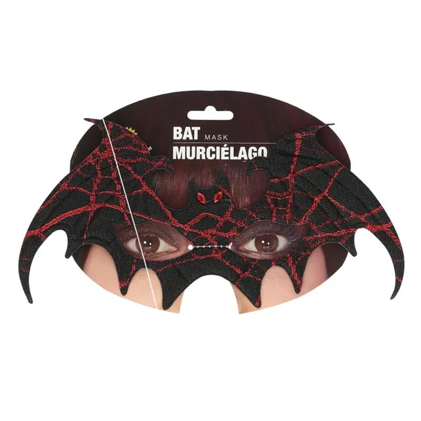 Czarna,miękka,piankowa maska z czerwonymi zdobieniami.