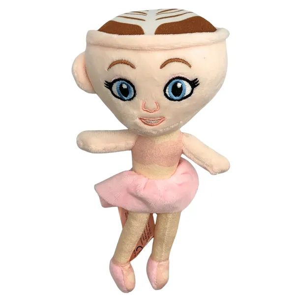 Detale takie jak haftowane oczy, puszysta spódniczka i śmieszny wzór latte art na głowie sprawiają, że maskotka wyróżnia się spośród zwykłych zabawek.