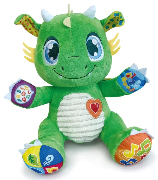 Uroczy smok wykonany z wyjątkowo miękkiego pluszu to idealny towarzysz zabaw w świecie przygód i wyobraźni! Dzięki niezliczonym efektom dźwiękowym i świetlnym wprowadza najmłodszych w treści edukacyjne przy użyciu piosenek, rymowanek i zabawnych powiedzonek. Rozwija zdolności manualne, umiejętność słuchania i dojrzałość emocjonalną, pomagając dziecku w poznawaniu języka i nauce wielu nowych słów.Wiek 6 m-cy+