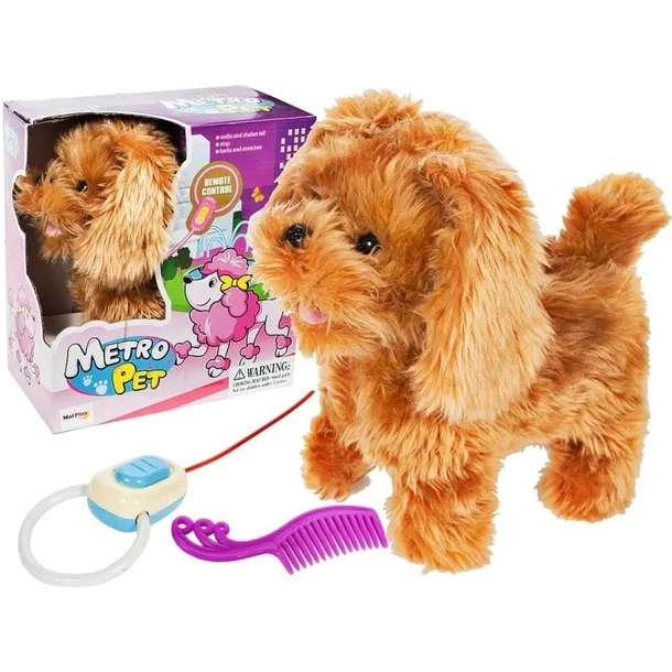 Maskotka interaktywna Piesek chodzący na smyczy brązowy