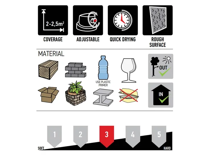 Zapewnia realistyczny wygląd pokrycia prawdziwą rdzą. Nadaje powierzchni rdzawoczerwony kolor oraz szorstką teksturę. Małe cząstki metalu w farbie sprawiają, że powierzchnia połyskuje jak prawdziwa rdza. Farba tworzy rdzawy efekt także na innych powierzchniach niż metal takich jak: drewno, kamień, beton, tektura, szkło jak i tworzywa sztuczne. Tworzy mocną, odporną na warunki atmosferyczne i promieniowanie UV powierzchnię. Farba w sprayu Maston Rust Effect osiąga twardość powierzchni porównywalną z farbami przeznaczonych do stosowania zewnętrznego. Dodatkowo powierzchnia nie zawiera zanieczyszczeń, takich jak zwykła rdza (tlenek żelaza), dlatego można go stosować również na przedmioty mające kontakt z ludzką skórą lub ubraniami.
