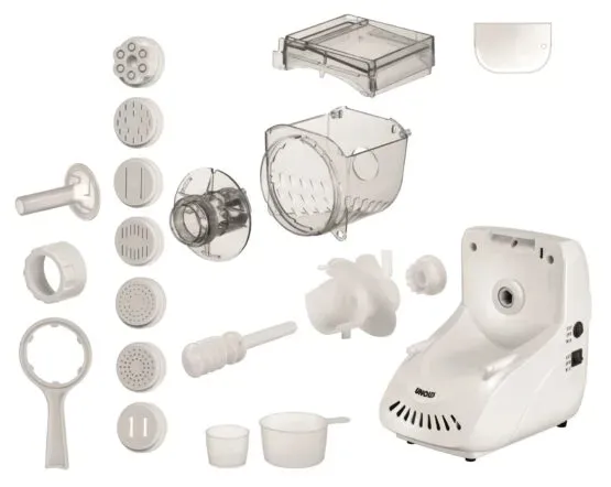 Wyposażenie: 6 tarcz do makaronu, Lej do napełniania kiełbas, Tarcza do ciasteczek