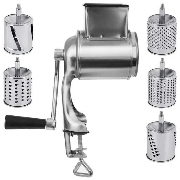 FUNKCJONALNA - Wyposażona jest w pięć wkładek, które pozwalają na dostosowanie grubości tarcia lub szatkowania w zależności od potrzeb. Sprawdzi się do wygodnego mielenia orzechów, sera, czekolady, owoców lub warzyw. Tarte składniki są idealne jako dodatki do ciast, deserów czy dań.