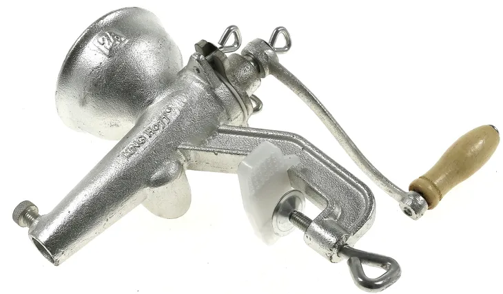 Ręczna żeliwna wyciskarka do owoców i warzyw wykonana z żeliwa firmy KINGHOFF / EDEL HOFF. Wytrzymała, żeliwna konstrukcja zapewnia użytkownikom bezawaryjną pracę wyciskarki przez cały okres jej eksploatacji i umożliwia prowadzenie zdrowszego trybu życia. Charakteryzująca się ergonomiczną budową korbka korzystnie wpływa na wydajność działania urządzenia, zarówno przy wyciskaniu perzu, jak i miękkich owoców oraz warzyw. Zacisk pozwala przymocować wyciskarkę do każdego rodzaju blatu, zaś gumowe osłony zabezpieczają powierzchnie blatu przed uszkodzeniem. Urządzenie można łatwo i szybko zdemontować i rozłożyć w celu umycia.