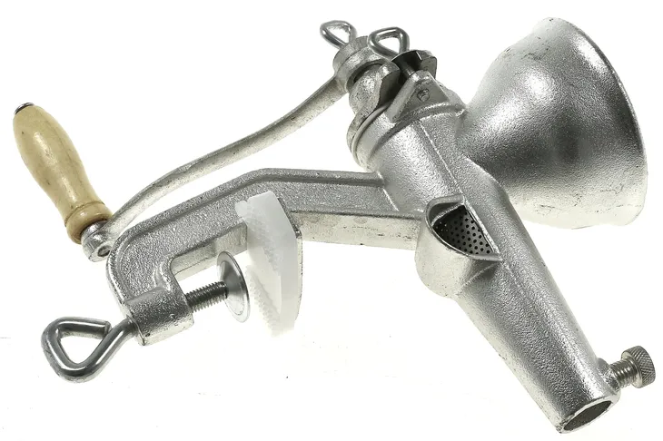Specyfikacja: - wysokiej jakości żeliwna konstrukcja, - wyciskarka wyposażona w korbkę z drewnianą rączką, - w komplecie 1 sito filtracyjne, - budowa gwarantuje łatwość czyszczenia i prostą obsługę urządzenia.