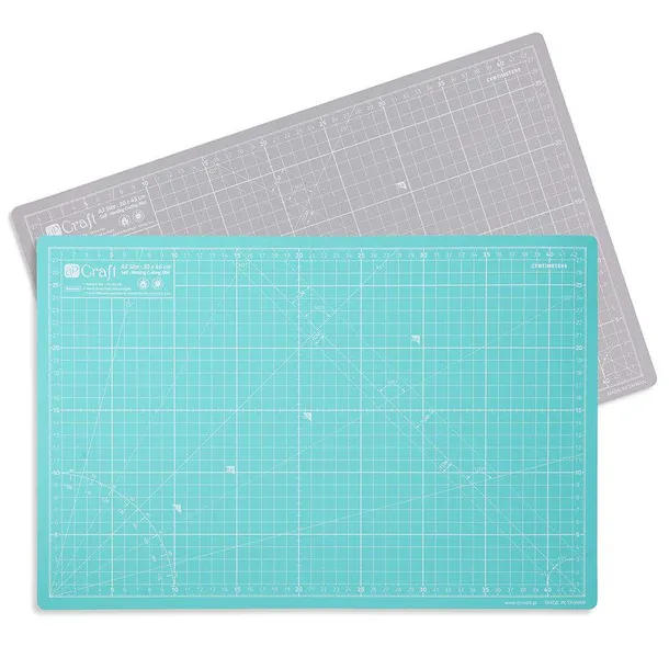 Dwustronna mata samogojąca, wykonana z pięciu warstw. Doskonała jako podkład do cięcia nożykami i skalpelami. Posiada siatkę centymetrową i kątowe linie. Na krawędziach miarka milimetrowa.