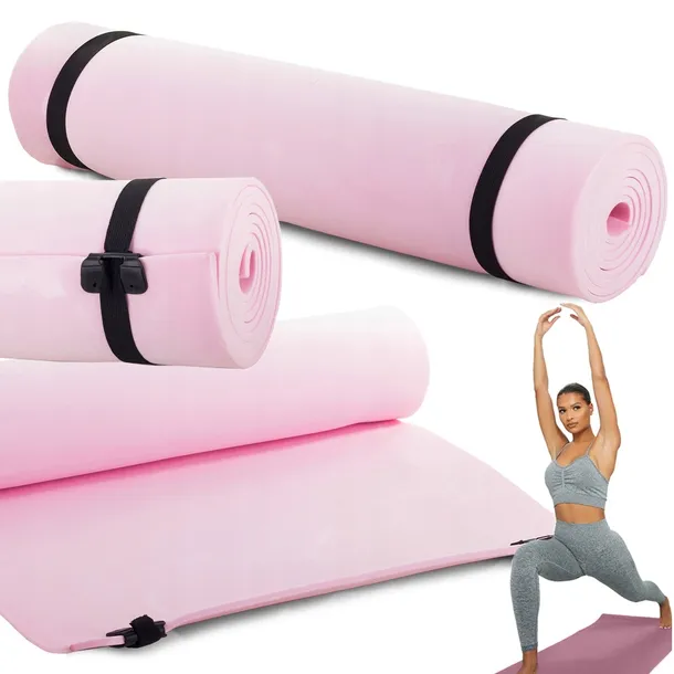 Mata waży niewiele, a po zwinięciu zajmuje mało miejsca. Paski z klamrą pozwalają wygodnie ją zwinąć, zabezpieczyć i przenosić – wrzucisz ją do torby, plecaka albo przewiesisz przez ramię i ruszysz na trening.