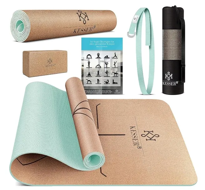 Mata do jogi KESSER z systemem linii do wyrównywania ciała + plakat z ćwiczeniami