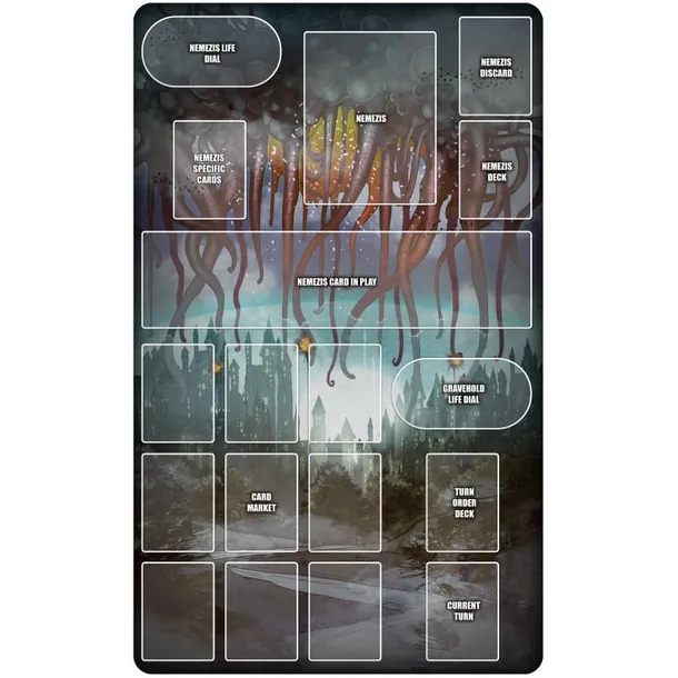 Antypoślizgowa, gumowa mata dedykowana do gry Aeon's End. Taka oprawa wizualna pozwala lepiej wczuć się w grę, co znacznie zwiększa doznania z rozgrywki. Poza zwiększonymi walorami estetycznymi gry, mata dodatkowo chroni karty i akcesoria przed zniszczeniem oraz przesuwaniem.