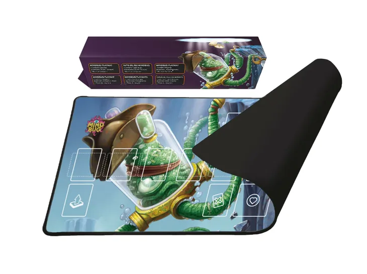 Mata do gry Mindbug zawiera oryginalną grafikę wydrukowaną na wysokiej jakości, antypoślizgowej gumowej podstawie. Podwójnie szyta krawędź sprawi, że mata będzie służyć przez wiele bitew bez strachu przed przeciwnikami. Mata przeznaczona dla 1 gracza.
