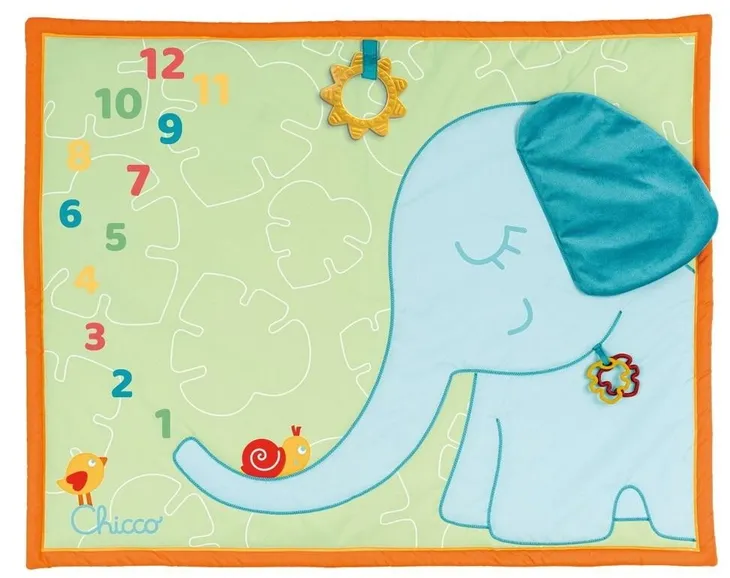 MATA DO ZDJĘĆ SŁONIK to miękka mata wykonana z materiału pochodzącego z recyklingu, która idealnie nadaje się, aby robić piękne zdjęcia maluszkowi, uwieczniając na nich jego wzrost i zachodzące zmiany w ciągu pierwszego roku życia.Mata do zdjęć zapewni wspaniałą pamiątkę na lata. Dzięki macie słonikowi opiekun miesiąc po miesiącu może fotografować swoje dziecko, układając je na niej i uwieczniając na zdjęciach jak dziecko rośnie.Słoneczko wykonane z plastiku pochodzącego z recyklingu służy do zaznaczania na macie numeru odpowiadającego miesiącowi malucha. Dodatkowo, ma ono specjalną strukturę, dzięki czemu sprawdza się w okresie ząbkowania. Jest bezpieczne nie zawiera farby i jest łatwe do chwycenia.Na macie przymocowane są również grzechoczące liście wykonane z plastiku z recyklingu, bez użycia farby, zapewniając dziecku bezpieczne aktywności manualne.Ucho słonika wykonane jest z bardzo miękkiego i przyjemnego w dotyku weluru pochodzącego z recyklingu, które podczas dotykania szeleści, przyciągając uwagę dziecka.Mata jest obszerna, ma wymiary 72 x 90 cm i na co dzień może służyć jako mata do zabawy, dzięki wielu aktywnościom.Słoneczko i listki wykonane są w 80% z plastiku z recyklingu, a mata w 65% z poliestru pochodzącego z recyklingu. Zabawka przeznaczona jest dla dzieci od pierwszych dni życia.Wymiary zabawki: 90 x 3 x 71,2 cm