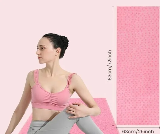 MATA RĘCZNIKOWA DO JOGI ODDYCHAJĄCA SKŁADANA ANTYPOŚLIZGOWA RÓŻ 183x63CM