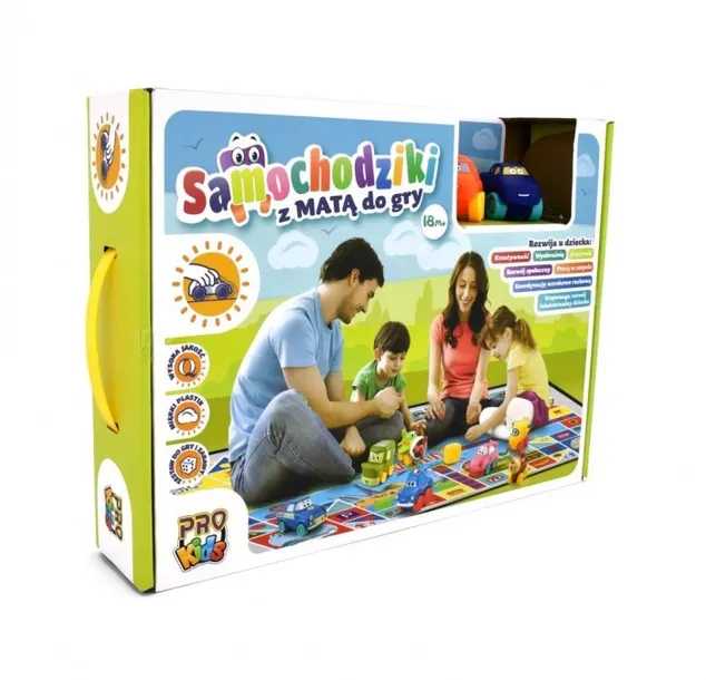 ✔️ Mata winylowa z samochodzikami od 18 miesiąca życia. Dziecko może rozgrywać wyścigi, tworzyć scenariusze jak i scenki z codziennego życia miasta. Mata wykonana jest z wysokiej jakości winylu, łatwo ją wyczyścić, może służyć również jako dywan i miejsce do innych zabaw.Mata może służyć również jako prosta gra planszowa dzięki załączonym polom i kostce do gry. Na macie możemy zagrać w prostą planszówkę pokonując kojenie etapy lub zabrać w chińczyka. Na nacie umieszczono wiele znaków drogowych oraz ciekawych przedmiotów jak i zwierząt dzięki czemu dziecko przez zabawę poznaje otaczający je świat.Zestaw do zabawy zawiera 6 kolorowych pojazdów, matę winylową 145 x 98 cm, kostkę do gry.Mata może służyć również jako gra planszowa.Wiek 18m +Waga 778 gWymiary maty 145 x 98 cm.EAN: 5902666699817Grupa wiekowa: 18m+Opakowanie: pudełkoProducent: Pro KidsWymiary: 296x401 mm