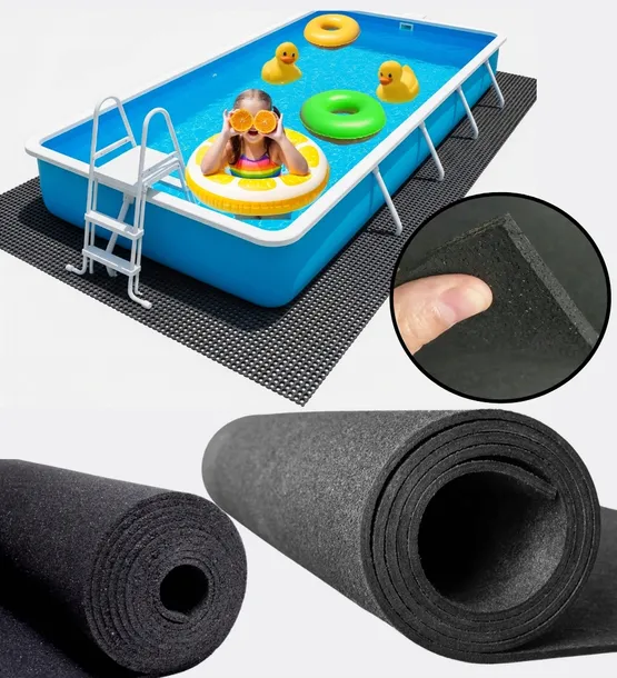 ✔️Izolacja cieplna – Dzięki macie gumowej woda z basenu nie traci ciepła przez dno basenu. Wydłuża się komfort korzystania z basenu