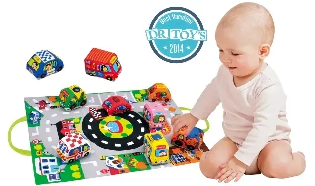 „Brum, Brum” auta jeżdżą wokół miasta. Mata - miniaturowe miasto (ze szkołą i strażą pożarną), jest sprzedawana razem z 9 miękkimi samochodzikami. Auta są wielokolorowe oraz przedstawiają różne zawody i liczby. To wspaniały sposób do zabawy w odgrywanie ról oraz nauki poprzez zabawę. Małe samochody grzechoczą i piszczą.
