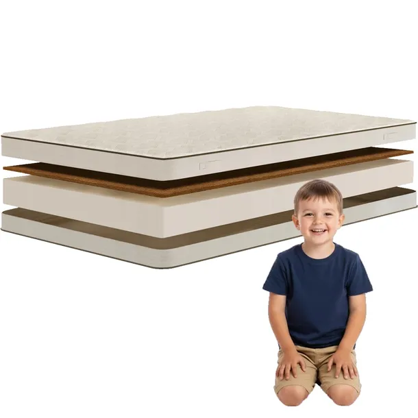 Warstwa maty kokosowej odpowiada za zwiększoną twardość materaca. Włókna kokosowe są sprasowane i lateksowane, dzięki czemu tworzą stabilną, oddychającą strukturę. Mata kokosowa poprawia wentylację, ogranicza rozwój bakterii i grzybów oraz zapewnia solidne podparcie kręgosłupa, szczególnie polecane dzieciom wymagającym twardszego podłoża.