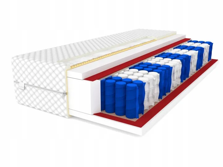 Produkt opiera się na bezpiecznych i trwałych materiałach, w tym filcu usztywniającym strukturę oraz 9-strefowej formatce sprężyn kieszeniowych w technologii NANOGOLD z podwójnym hartowaniem drutu wysokowęglowego. To wydłuża żywotność o ponad 50%, a system elastic pocket chroni przed przecieraniem kieszonek, oferując niezawodne wsparcie dla kręgosłupa i mięśni przez lata.