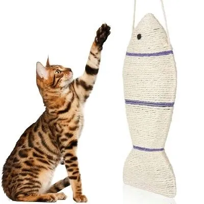✅ Sizalowy drapak w kształcie dużej ryby, idealny do zabawy i ostrzenia pazurków.
