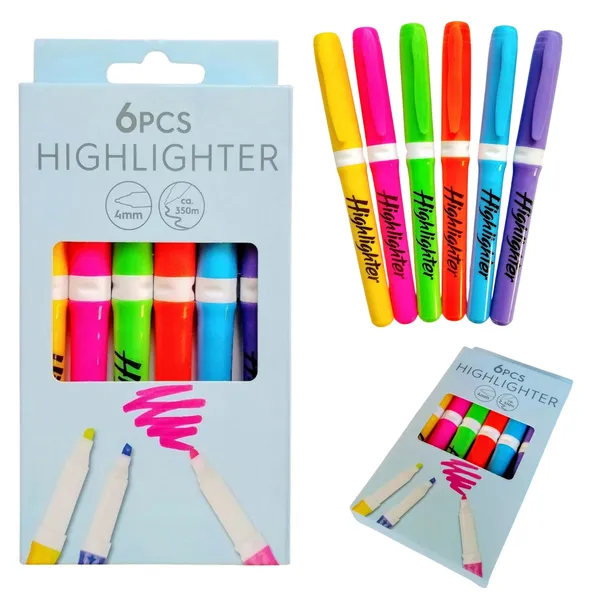 ZAKREŚLACZE ZESTAW ŻYWE FLUORESCENCYJNE NEONOWE KOLORY ZESTAW 6 SZTUK