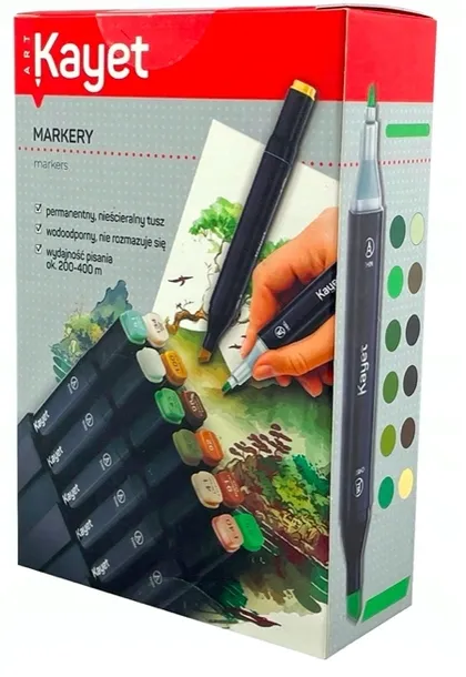 Dwie końcówki - szeroka-płaska oraz cienka-punktowa - dają ogromne możliwości twórcze. Końcówki wykonano z odpornego na ścieranie tworzywa, dzięki czemu markery będą służyć przez długi czas. Włókno końcówek nie rozwarstwia się, nie oddziela i nie podcieka. Nasączony tuszem wkład wykonany został w sposób gwarantujący równomierną dystrybucję tuszu - bez wysychania, wylewania i plam!