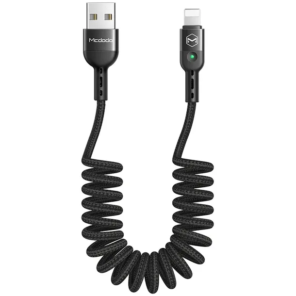 MCDODO KABEL USB LIGHTNING SPIRALNY SPRĘŻYNOWY SZYBKI DO IPHONE 14 LED 2M
