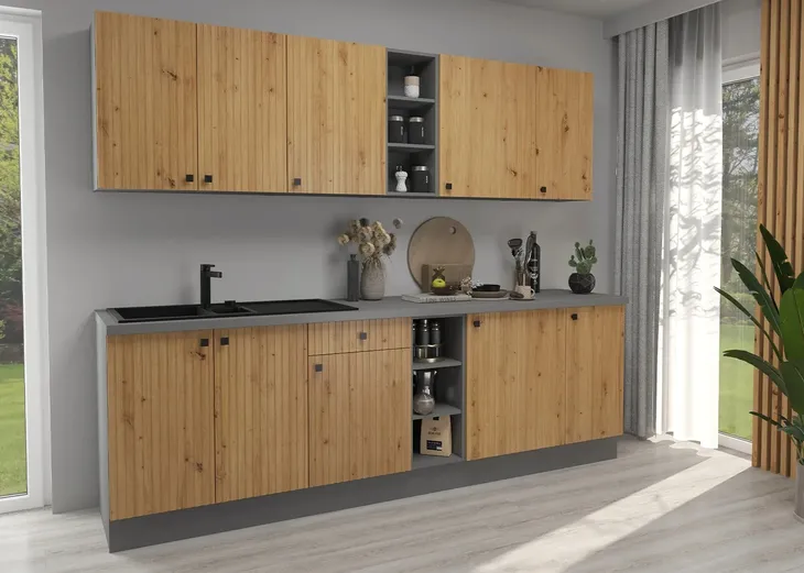 Zestaw mebli kuchennych Nea to prawdziwie rozbudowane arcydzieło w świecie aranżacji kuchni. Nea nie tylko przyciąga uwagę swoim nowoczesnym designem, ale także zachwyca funkcjonalnością i dbałością o detale.