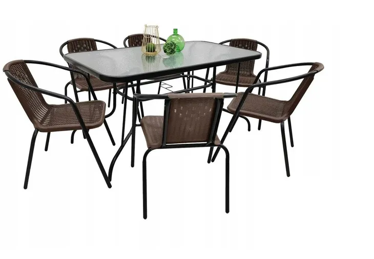 Zestaw ogrodowy obiadowy na taras 120x70cn na parasol dla 6 osób brązowy